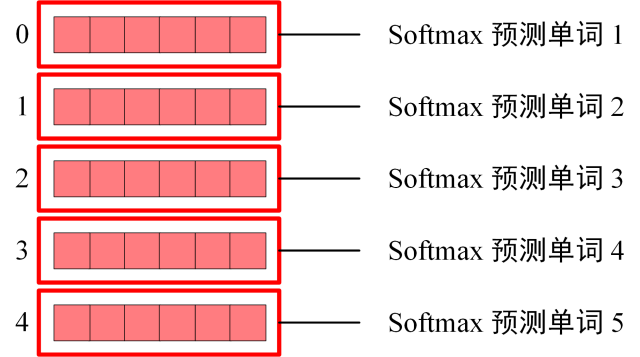 Softmax 根据输出矩阵的每一行预测下一个单词: